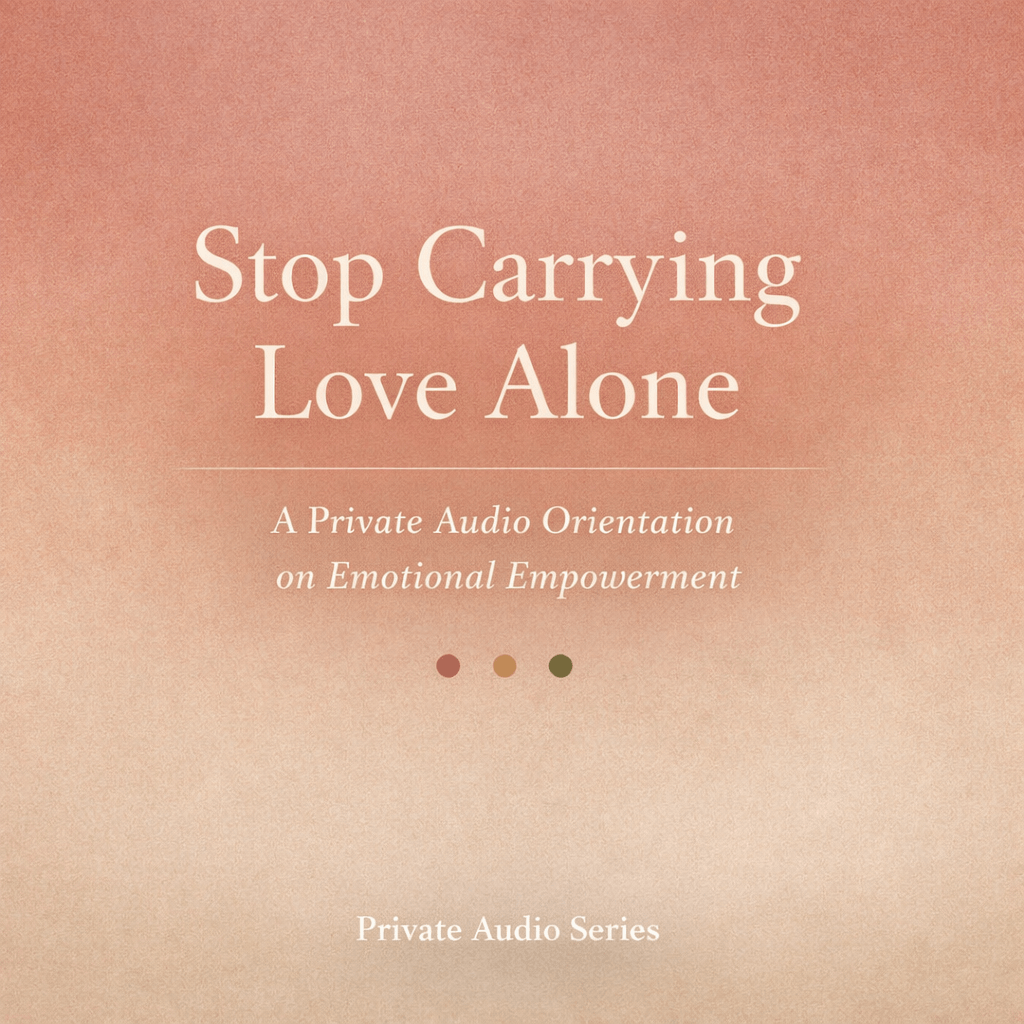 Stop Carrying Love Alone is a three‑part private audio series for high‑capacity, self‑aware women who are ready to share emotional responsibility instead of silently holding it.